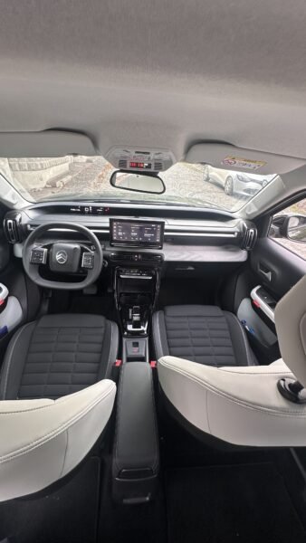 e-C3 Aircross’un iç mekânı, dış tasarımla uyumlu sade ve fonksiyonel bir yapıda. Markanın meşhur Advanced Comfort koltukları, uzun yolculuklarda bile konforu ön planda tutarak sürüş deneyimini üst seviyeye taşıyor. Aracın genel yerleşimi ve baş mesafesi gayet yeterli.